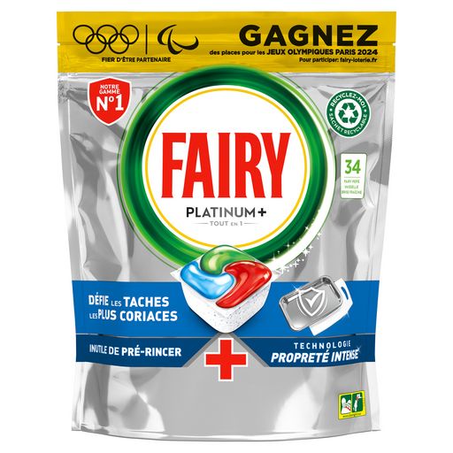 Les tablettes lave-vaisselle All in One Fairy Platinum avec la technologie propreté intense offrent un nettoyage approfondi pour une vaisselle comme neuve et éliminent les résidus alimentaires difficiles. Fairy Platinum Plus vous offre un nettoyage exceptionnel qui élimine les taches tenaces, même avec une vaisselle extrêmement sale pendant un cycle court. Vous n'avez pas le temps ? Pas de souci. Optez pour un cycle court. Fairy associe du liquide et de la poudre dans des capsules performantes. Leur sachet ultra-soluble se dissout rapidement et convient aux cycles courts, pour commencer à nettoyer sans délai. Et elles sont faciles à utiliser. Pas besoin de les déballer, placez-les simplement dans votre compartiment pour produit lave-vaisselle. Optez pour un cycle court* au lieu d'un cycle normal et économisez du temps, de l'énergie et de l'eau.