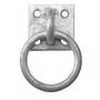 Anneau sur platine en acier galvanisé. Platine 50 x 50 mm pré-percée.