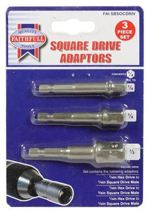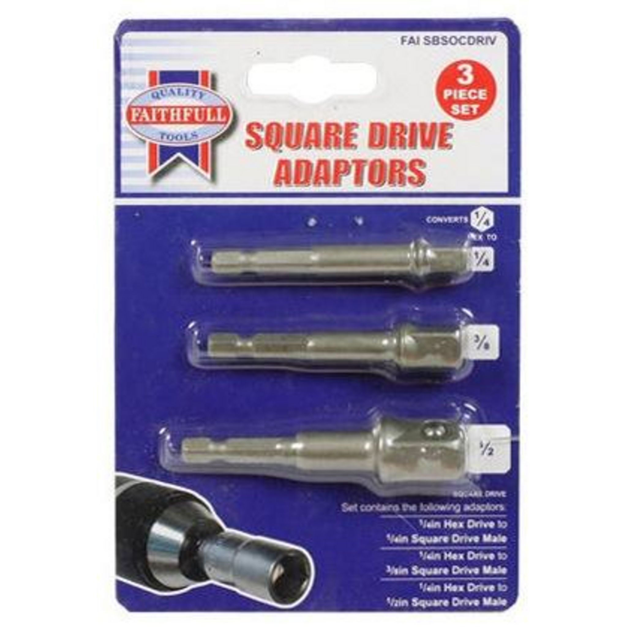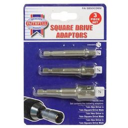 Jeu de 3 porte douilles. Sortie carré mâle 1/4 - 1/2 - 3/8 . Longueur : 50 et 70 mm.