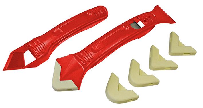 Kit complet pour rénover les joints usés ou moisis. Composé de : 1 racloir angulaire 1 plat pour enlever rapidement et facilement les joints silicone ou acrylique 1 lisseur avec 5 profilés pour une finition propre plus ou moins large du nouveau joint 1 lame centrale pour l',ouverture des cartouc