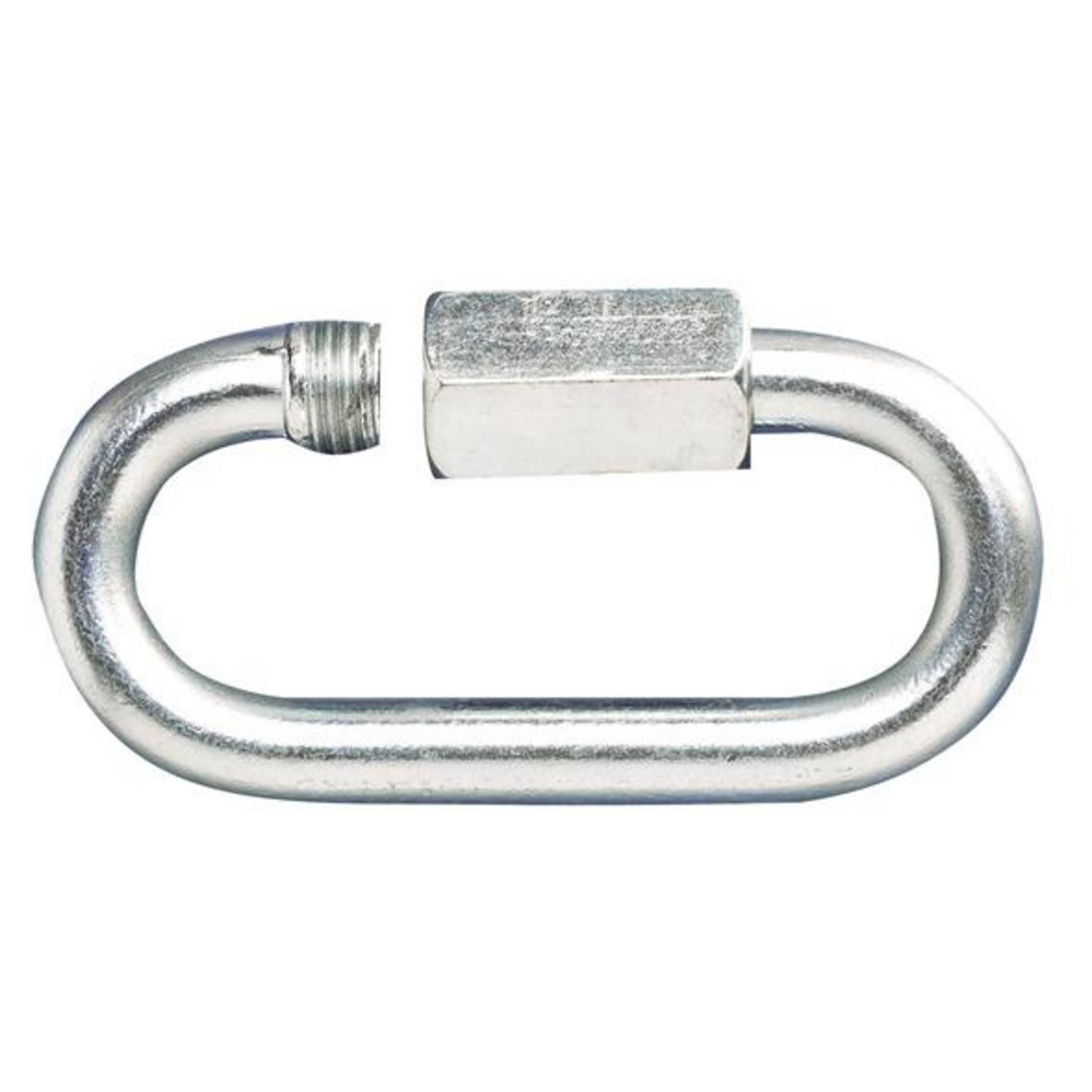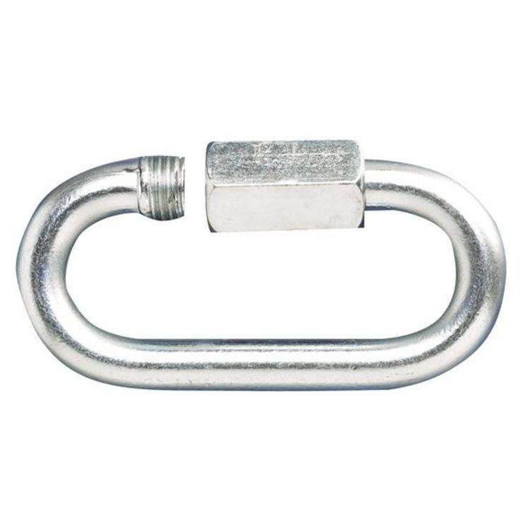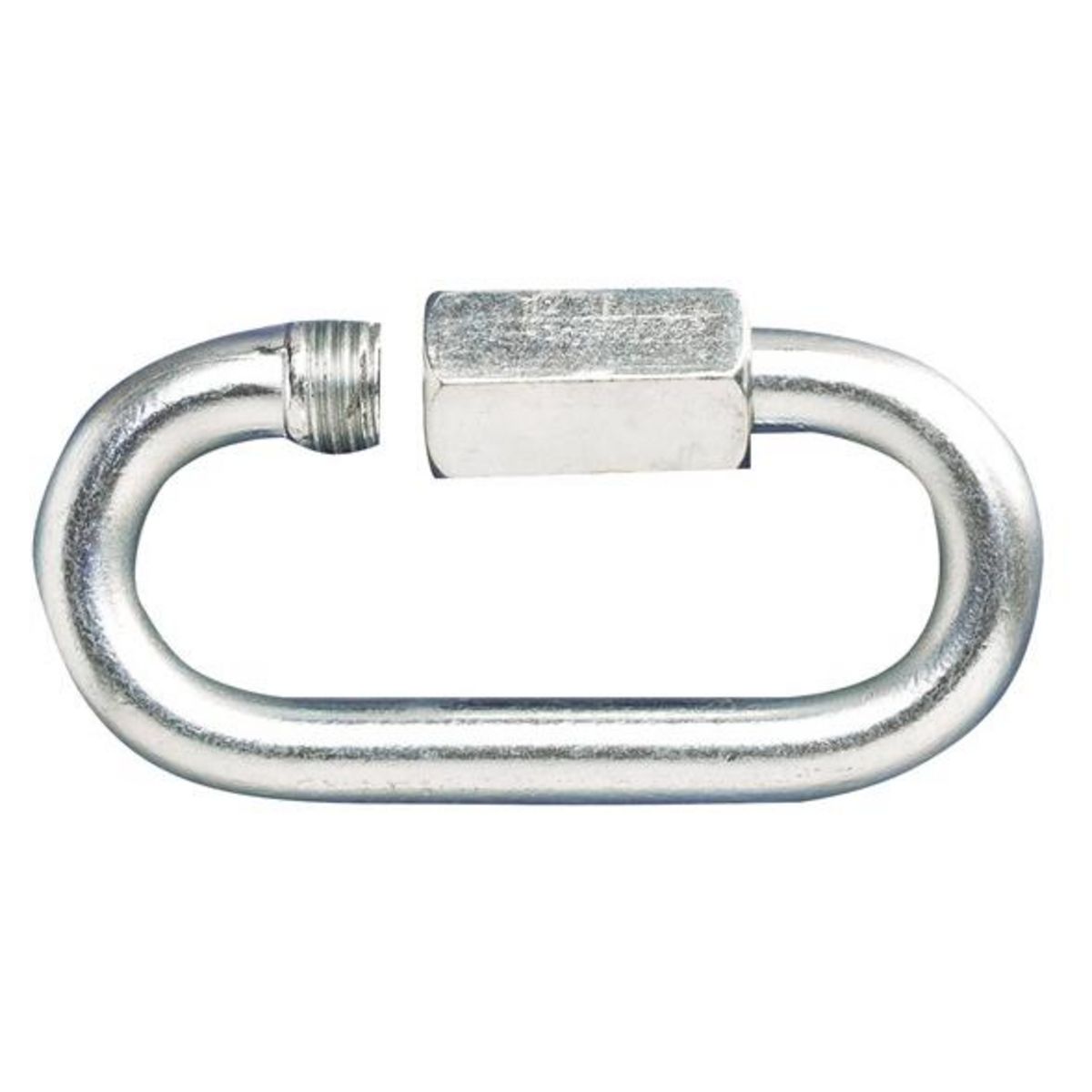 Lot de 4 maillons rapides en acier zingué. Ouverture/fermeture par manchon hexagonal à vis.Diamètre fil : 6 mmIntérieur maille : 46 x 14 mm