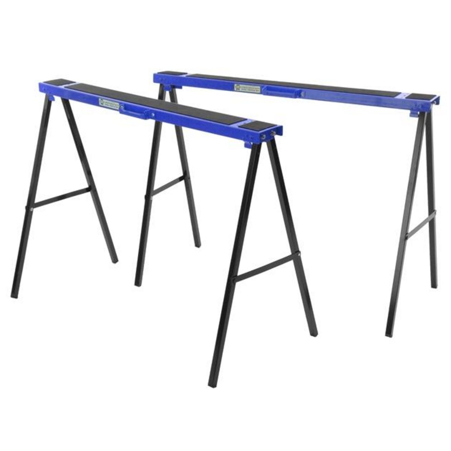 Tréteaux en acier, compacts et faciles à installer.Piètement avec verrouillage de sécurité.Tréteaux clipsables ensemble pour faciliter le transport, poignée intégrée.Capacité de charge : 400 kg (la paire).Dimensions (fermés) : 1000 x 100 mm.