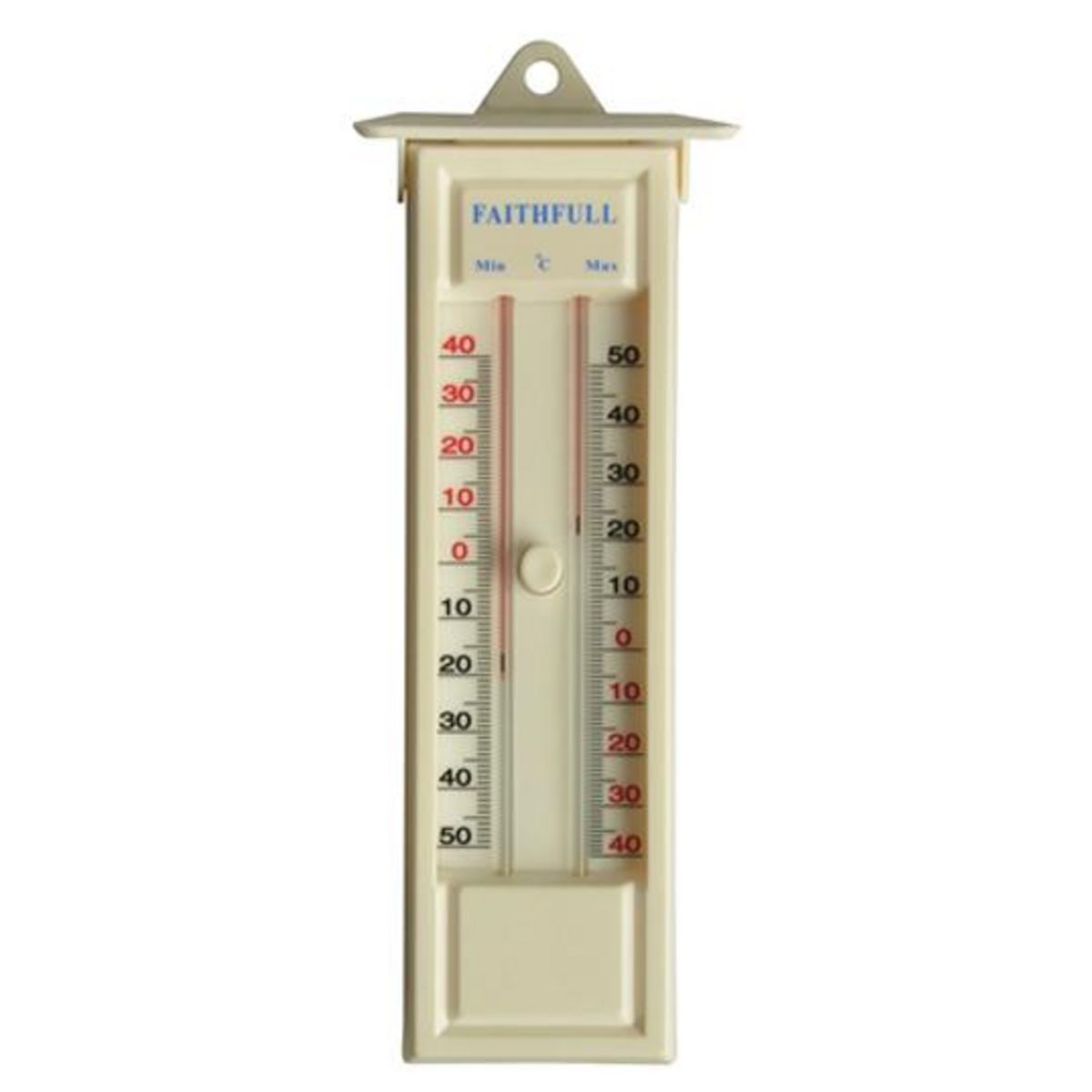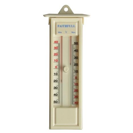 Equipé de 2 curseurs, ces thermomètre indiquent les températures en temps réel et les plus élevées et basses qui ont été atteintes. Avec bouton de réinitialisation. Mesure en Celsius. Sans mercure.Température : - 50 à + 50° CelsiusLongueur : 230 mm