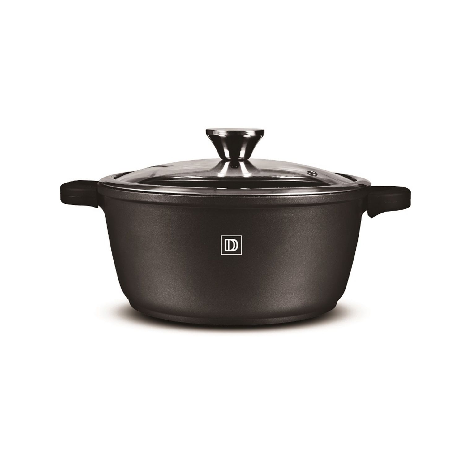 Faitout de cuisine tous feux dont induction En fonte d'aluminium Tous feux dont induction Doubles poignées amovibles en silicone pour un meilleur confort NOIR Diamètre : 24 cm Hauteur : 11,5 cm Contenance : 4,5L Revêtement intérieur anti-adhésif et très résistant Non compatible au lave vaisselle