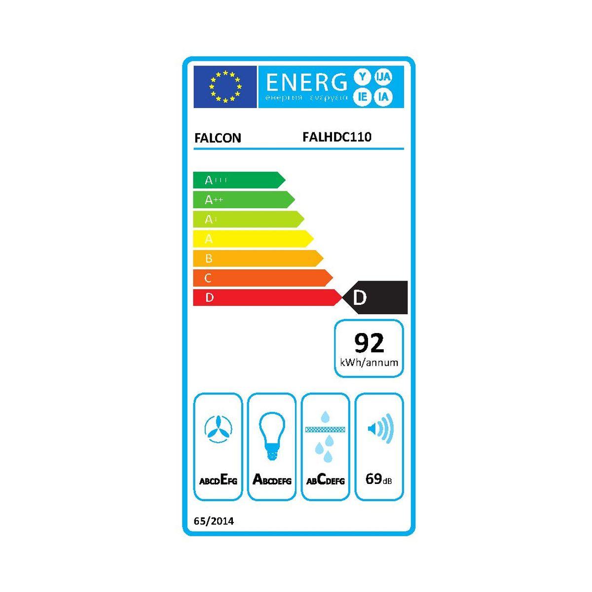 | Consommation d'énergie | Classe d'efficacité énergétique: D, Consommation annuelle d'énergie en kWh: 92 kWh, Classe d'efficacité d'évacuation de la vapeur et fumées: E, Classe d'efficacité de l'éclairage: A, Classe d'efficacité de filtration des graisses: C | |