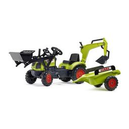 CLAAS Tractopelle Arion 410 avec excavatrice - Équipé d'un volant directionnel avec klaxon - Véritable réplique a pédales - Ludique grâce a sa pelle frontale articulée et son excavatrice - Remorque a ridelles - Capable de résister aux petits baroudeurs - a partir de 2 ans - Livré a l'unité