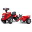 Ce porteur tracteur Massey Ferguson est équipé d'un volant directionnel avec klaxon, une remorque avec outils, 2 kits de stickers, une plaque d'immatriculation personnalisable,100% made in France.