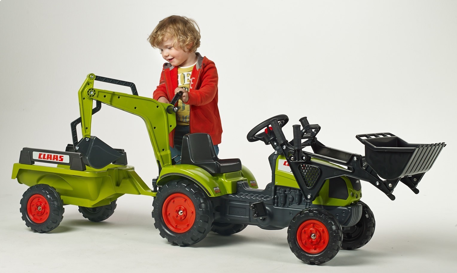 Tractopelle 2040N Claas Arion avec excavatrice et remorque de Falquet, pour de bons moments d'amusement