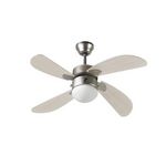 FARELEK - BERMUDES O 107 cm - Ventilateur de plafond reversible, 4 pales chene clair + eclairage 1 globe 60W E27 - 112423