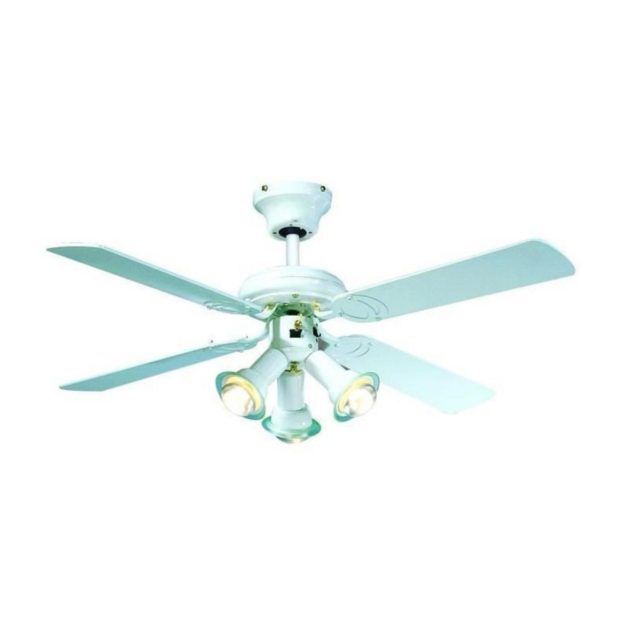 FARELEK - MALDIVES O 107 cm - Ventilateur de plafond reversible, 4 pales laquees blanc + eclairage 3 spots 60 watts E14 - 112615