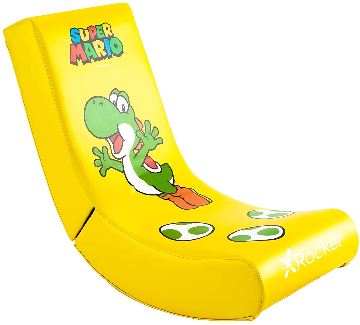 Plongez dans l'action et faites l'envie de vos amis avec ce fauteuil à bascule vidéo X Rocker officiellement licencié mettant en scène le personnage emblématique de Yoshi de la série Super Mario Bros® de Nintendo. Cette chaise de jeu pliante Jump Edition est parfaite pour le jeune et sérieux fan et