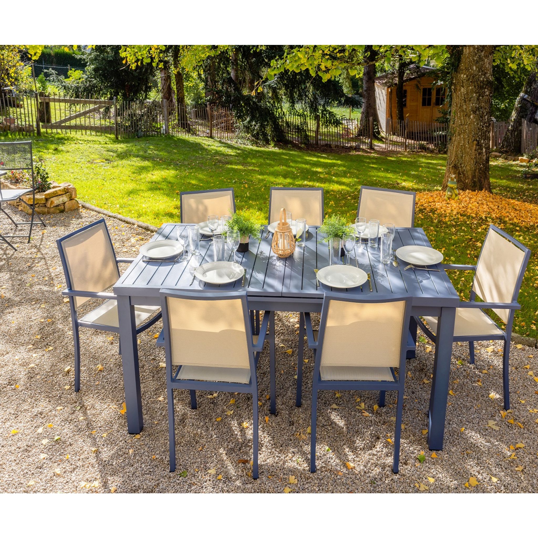 Cette chaise avec cette couleur tendance sera idéale pour votre jardin. Elle peut accompagner votre table SANTORIN GRIS BLEUTE