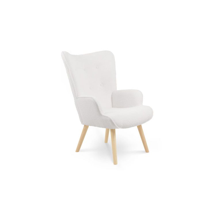 Le fauteuil SVEN, en tissu bouclette blanc, est l'incarnation du confort moderne. Conçu avec une bouclette en polyester douce et reposant sur des pieds en bois robustes, il ajoute une touche d'élégance intemporelle à tout intérieur. Son coloris blanc pur illumine l'espace, offrant une sensation de calme et de sérénité. Avec des dimensions d’assise de 45 cm (L) x 50 cm (l) x 45 cm (H) et une hauteur de dossier de 60 cm depuis le coussin, il garantit un soutien et un confort exceptionnels, idéal pour des moments de détente.