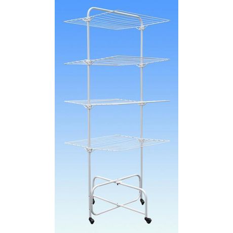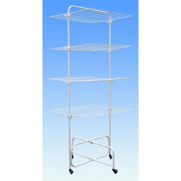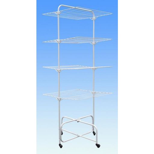 Faverge SEC2004 - Matière : Acier plastifié blancDimensions : 60 x 60 x 160 cmCapacité d'étendage : 32 mTubes d. 16 mm 4 hauteursSur roulettes