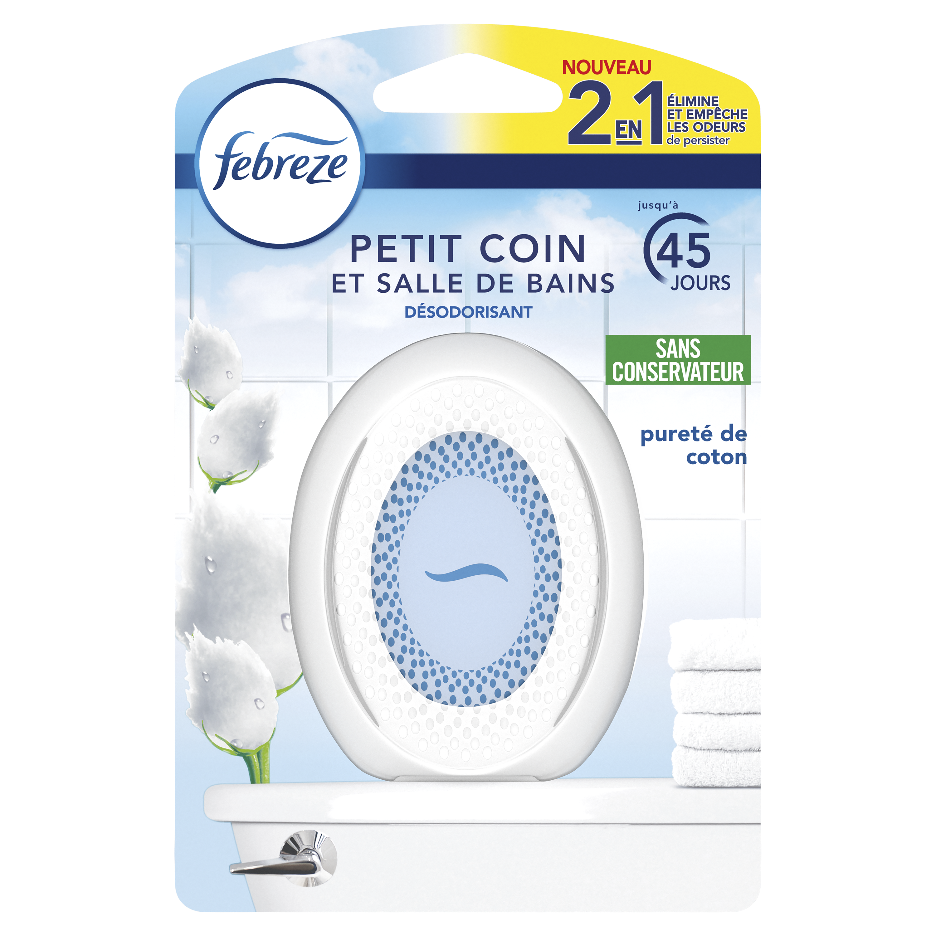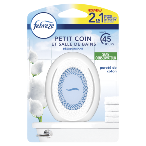 Febreze Petit Coin Pureté de Coton, Désodorisant Salle De Bain Pour Élimination Et Prévention Des Odeurs x1