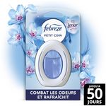 Notre premier désodorisant pour salle de bains et toilettes non électrique en continu élimine non seulement les odeurs de l'air, mais il empêche également qu'elles ne se déposent sur les surfaces souples telles que les serviettes, les tapis de bains et les rideaux de douche. Febreze Petit Coins utilise sa technologie unique anti-odeurs ClearTM qui diffuse une fraîcheur continue jusqu'à 50 jours, pour que votre salle de bains soit toujours prête à accueillir vos clients. Pratique et facile à utiliser, Febreze Petit Coin fonctionne sans électricité ni piles et se décline dans différents parfums.