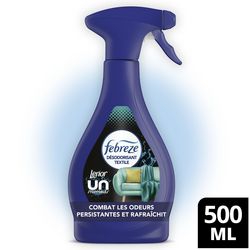 Febreze Textile Spray Désodorisant DOUBLE ACTION, combat les odeurs et rafraîchit. Il ne se contente pas de masquer les odeurs : il combat vraiment les odeurs tenaces emprisonnées dans les tissus, laissant un parfum frais qui dure jusqu'à 24 heures sur les tissus. Le parfum Lenor Unstoppables Frais s'inspire de l'océan, infusé d'agrumes verts acidulés et de nuances crémeuses. Il capture l'essence d'une pièce baignée de soleil remplie de l'arôme réconfortant des draps fraîchement lavés. Ce parfum exaltant s'ouvre sur du coton frais et du lilas doux, se fondant harmonieusement avec des fleurs d'oranger gorgées de soleil. Au fur et à mesure qu'il se dévoile, une caresse sereine de musc doux et de notes poudrées évoque la chaleur d'un lit douillet. Transformez votre intérieur en une escapade printanière revitalisante, où chaque instant est enrichi d'une élégance pure. Le désodorisant textile Febreze est idéal pour les tissus difficiles à laver tels que les housses, les rideaux et les tapis. Il rafraîchit également les vêtements, les serviettes et le linge entre les lavages. Le désodorisant textile Febreze est testé dermatologiquement et peut être utilisé en toute sécurité près des animaux domestiques.