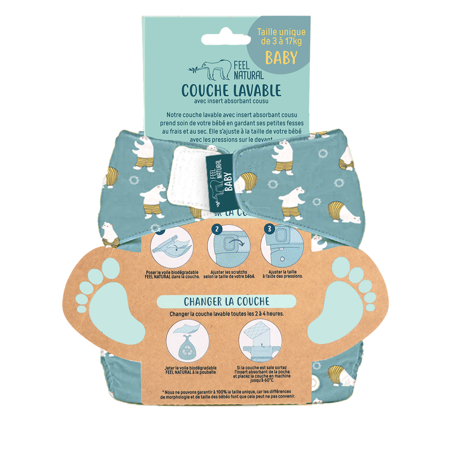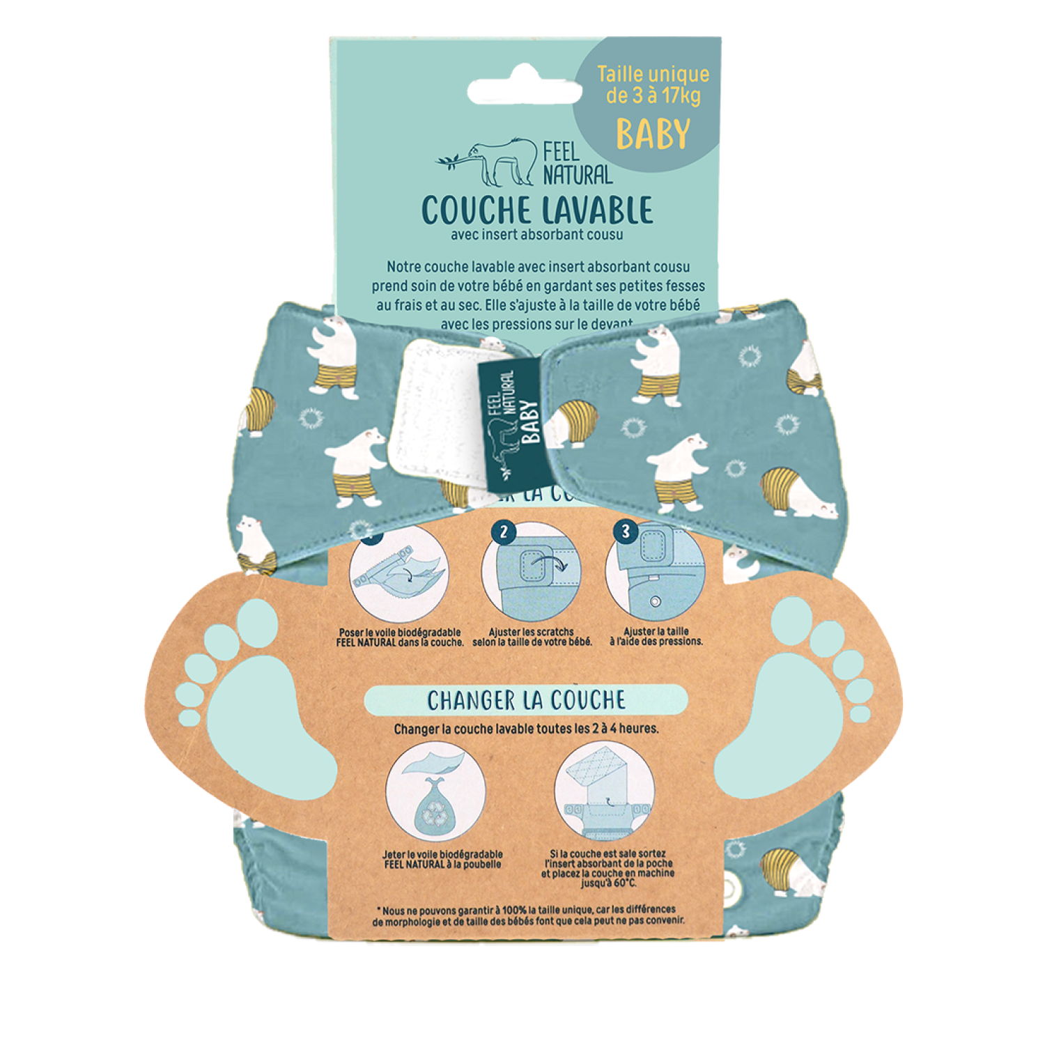 Couche lavable et réutilisable taille unique 3 à 17kg