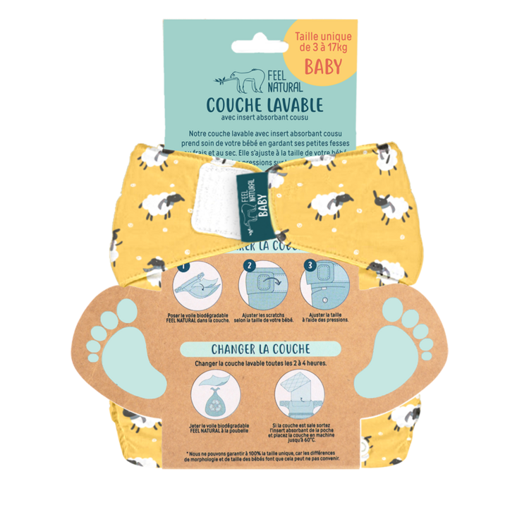 Notre couche lavable avec insert absorbant cousu prend soin de votre bébé en gardant ses petites fesses au frais et au sec. Elle s'adapte à l'évolution de votre bébé de 3 à 17 kg grâce aux pressions sur le devant et aux scratchs sur la taille. Compléter la couche avec nos voiles de protection