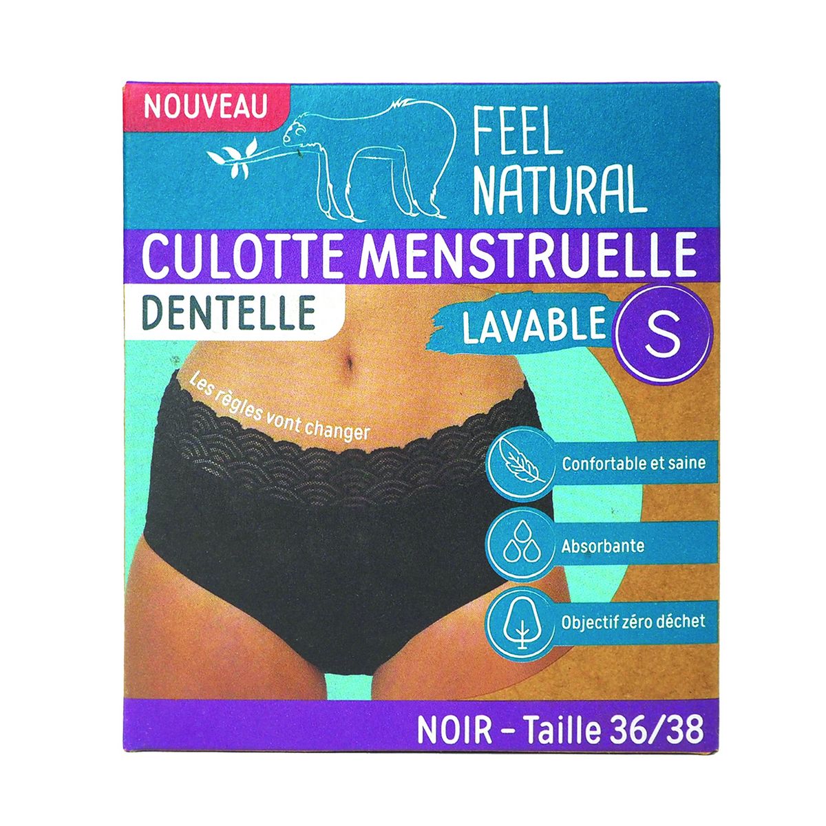 Culotte menstruelle en dentelle noir lavable taille S 36-38