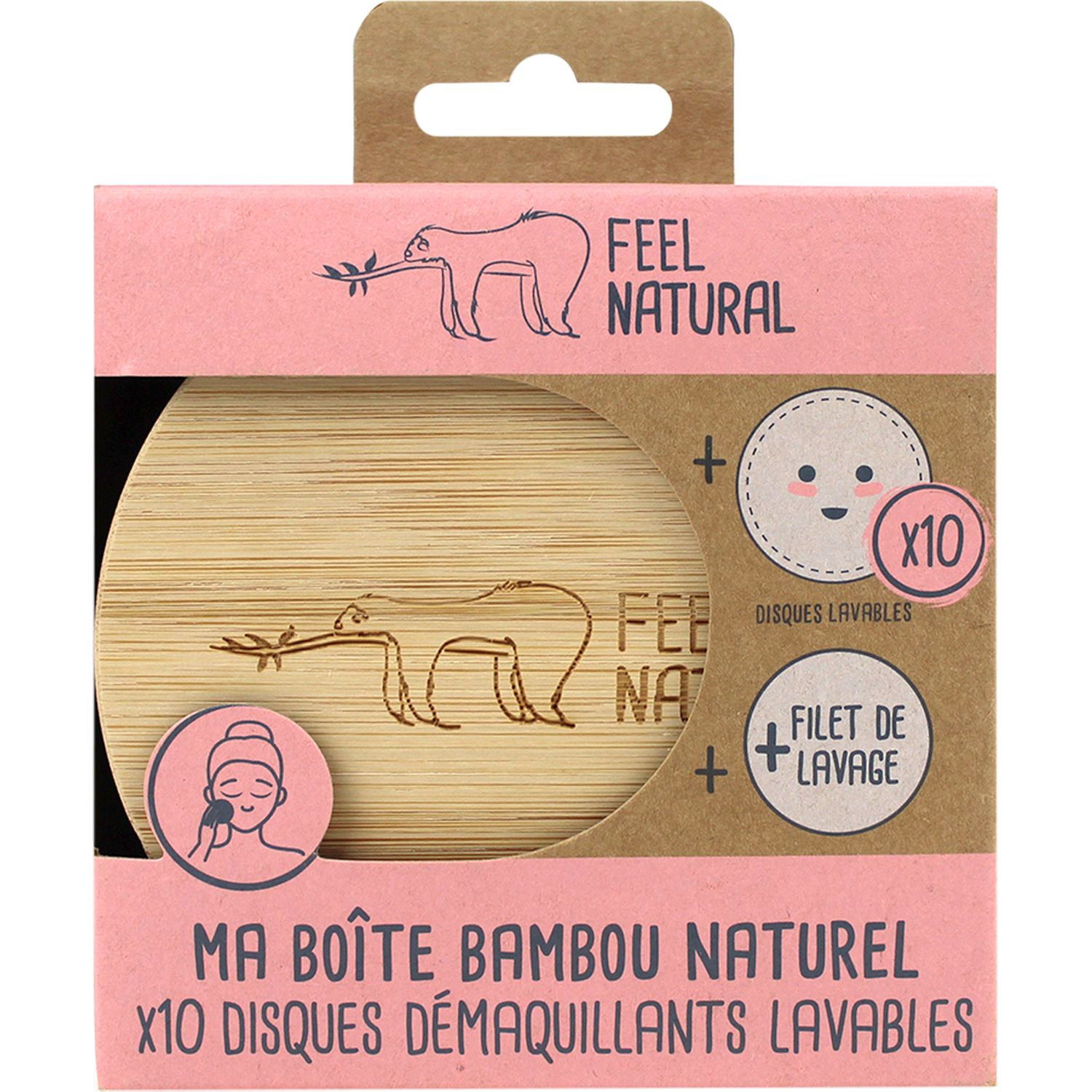 Set boite bambou+10 disques+Filet lavage