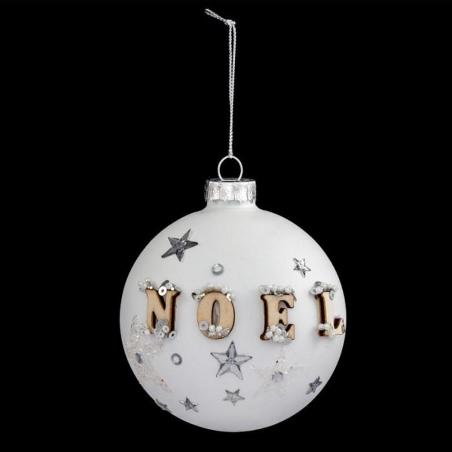 Informations Techniques : Dimensions : D. 8 cm Matière : Verre Spécificités : Pratique & Utile Boule de Noël Forme Ronde Design Mat Inscription Noël Avec Perles de Bois & Strass Poids : 0,025 kg Couleur : Blanc