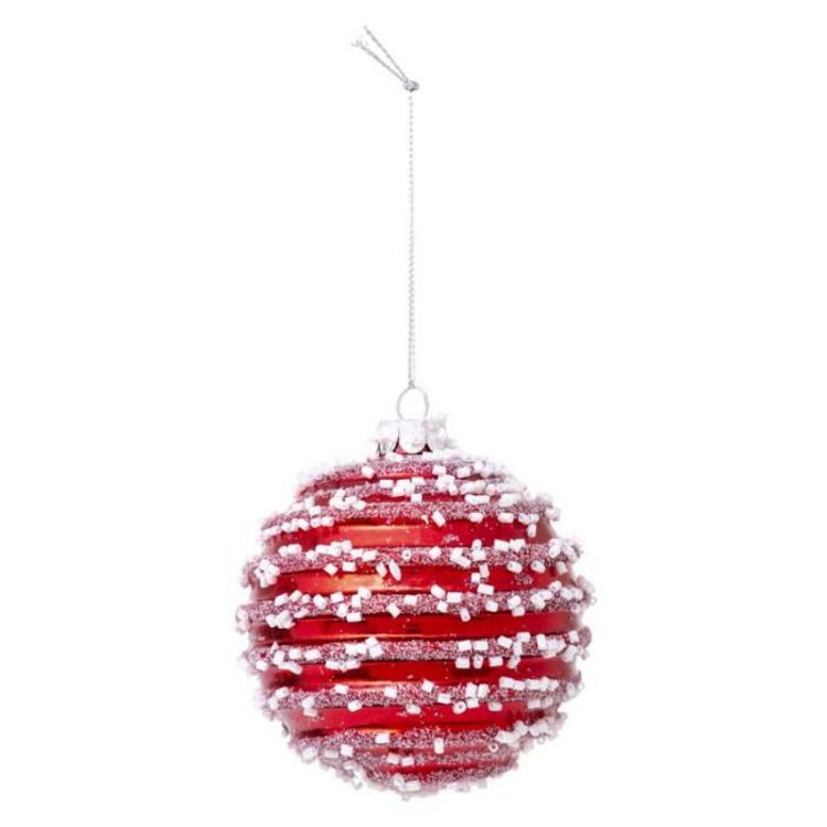 Informations Techniques : Dimensions : D. 8 x H. 9 cm Matière : Verre Spécificités : Pratique & Utile Boule de Noël Forme Ronde Avec Paillettes & Perles Poids : 0,05 kg Couleur : Rouge