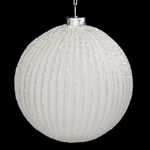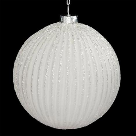 Informations Techniques : Dimensions : D. 10 cm Matière : Verre Spécificités : Pratique & Utile Boule de Noël Forme Ronde Design Mat Lignes Pailletées Poids : 0,049 kg Couleur : Blanc