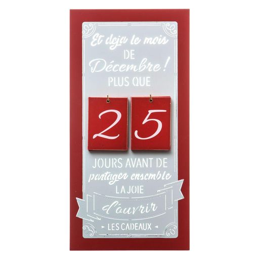 Calendrier de l'Avent en bois à suspendre Jeanne - Rouge