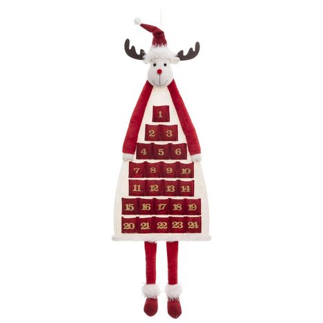 Calendrier de l'avent Renne de Noël en polyester à suspendre - Longueur 99 cm - Rouge