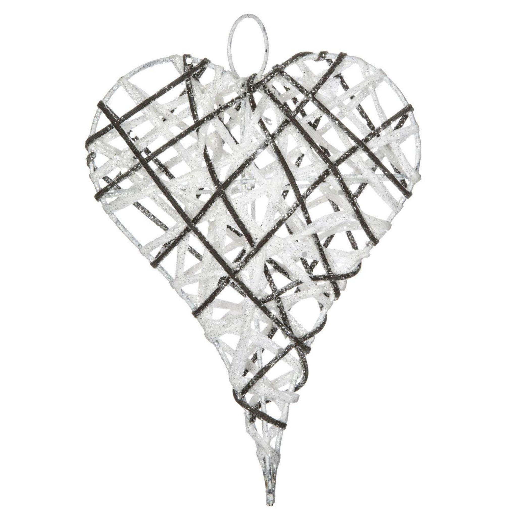 Cœur de Noël pailleté à suspendre - 15 x 20 cm - Blanc