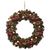 Couronne de noël avec Houx et étoiles à suspendre en bois et polystyrène - Diamètre 50 cm - Rouge, Vert et Marron