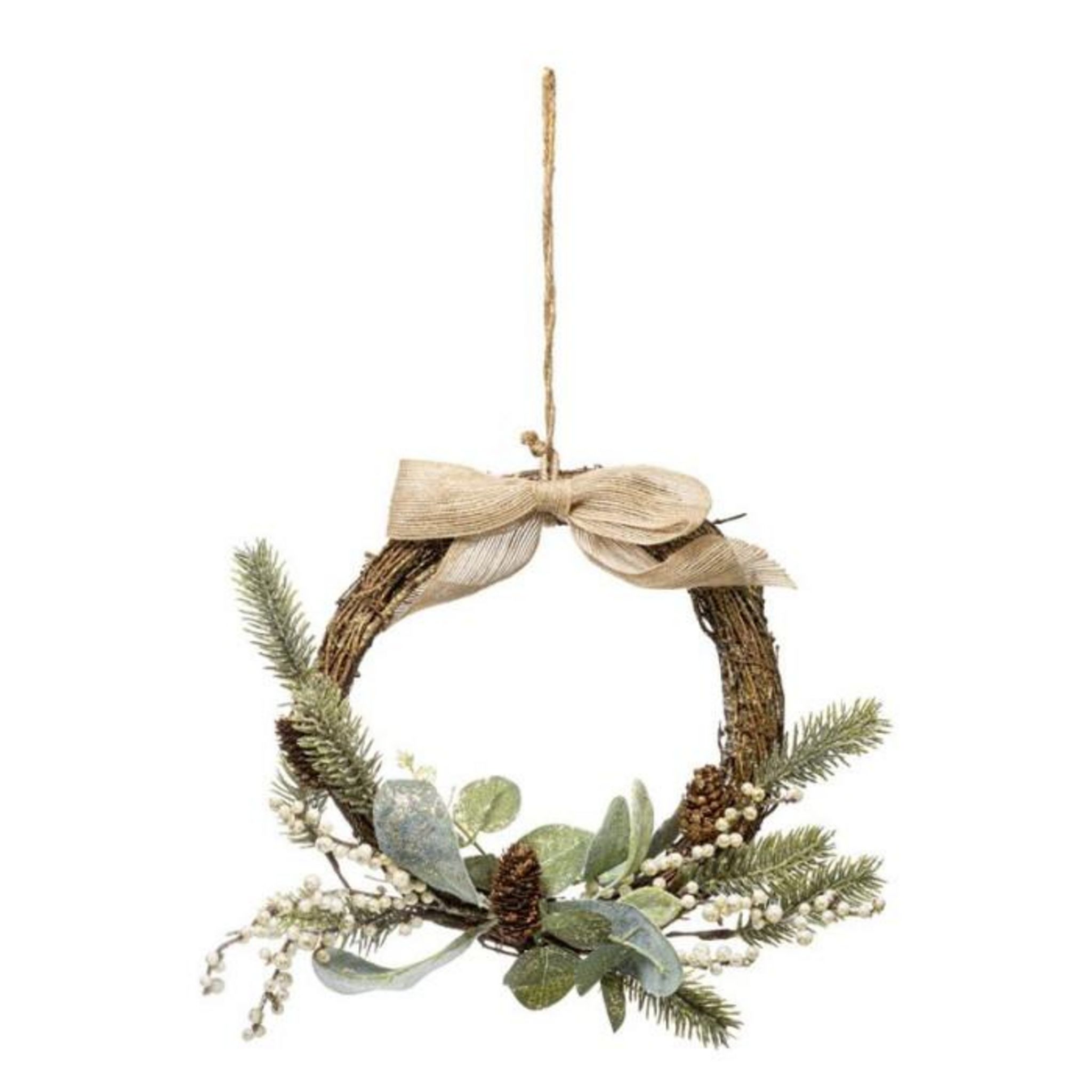 Informations Techniques : Dimensions : L. 36 x l. 6 x H. 26 cm Matières : Bois (Pin) & Polyester Spécificités : Pratique & Utile Couronne de Noël Forme Ronde Avec Baies, Branches & Noeud Poids : 0,12 kg Couleur : Naturel & Vert