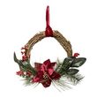 Informations Techniques : Dimensions : L. 23 x l. 5 x H. 38 cm Matières : Bois (Pin) & PVC Spécificités : Pratique & Utile Couronne de Noël Forme Ronde Avec Poinsettia Effet Velours Avec Baies, Branches & Ruban Finition Paillettes Poids : 0,12 kg Couleur : Naturel, Rouge & Vert