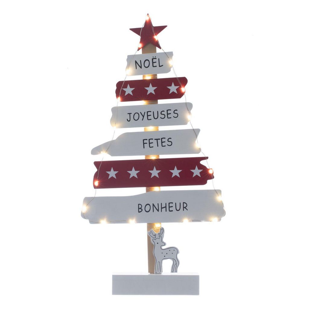 Illuminez et décorez votre intérieur grâce à ce produit lumineux.FICHE TECHNIQUE- Décoration de Noël à poser en MDF.- Lumineuse, elle fonctionne à pile, 2AA non incluses.- Ampoules : 30 LED.- Effet lumière : FIXE.CARACTERISTIQUES TECHNIQUES- Dimensions : L. 24.5 x l.6 x H. 50 cm.- Poids : 0,39 kg.
