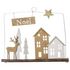 Informations Techniques : Dimensions : L. 27 x l. 2 x H. 27 cm Matières : MDF & Fer Spécificités : Pratique & Utile Décoration de Noël Suspension forme Maison Finition avec Paillettes Poids : 0,075 kg Couleur : Naturel & Blanc