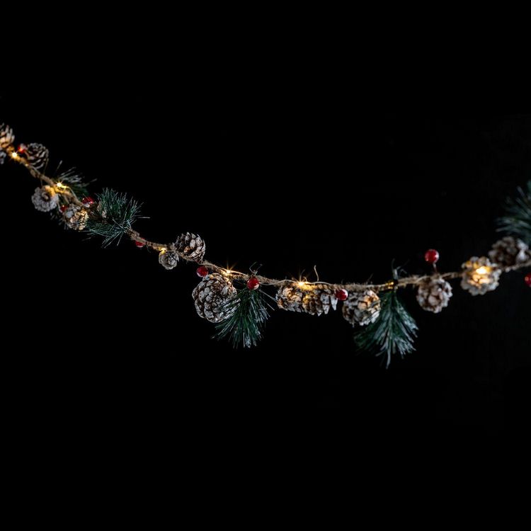 En savoir +Cette guirlande 10led a un aspect naturel grâce à ses pommes de pins et ses branches de sapins. Elle peut très bien décorer votre sapin mais également se poser sur la table pour décorer. A découvrir !