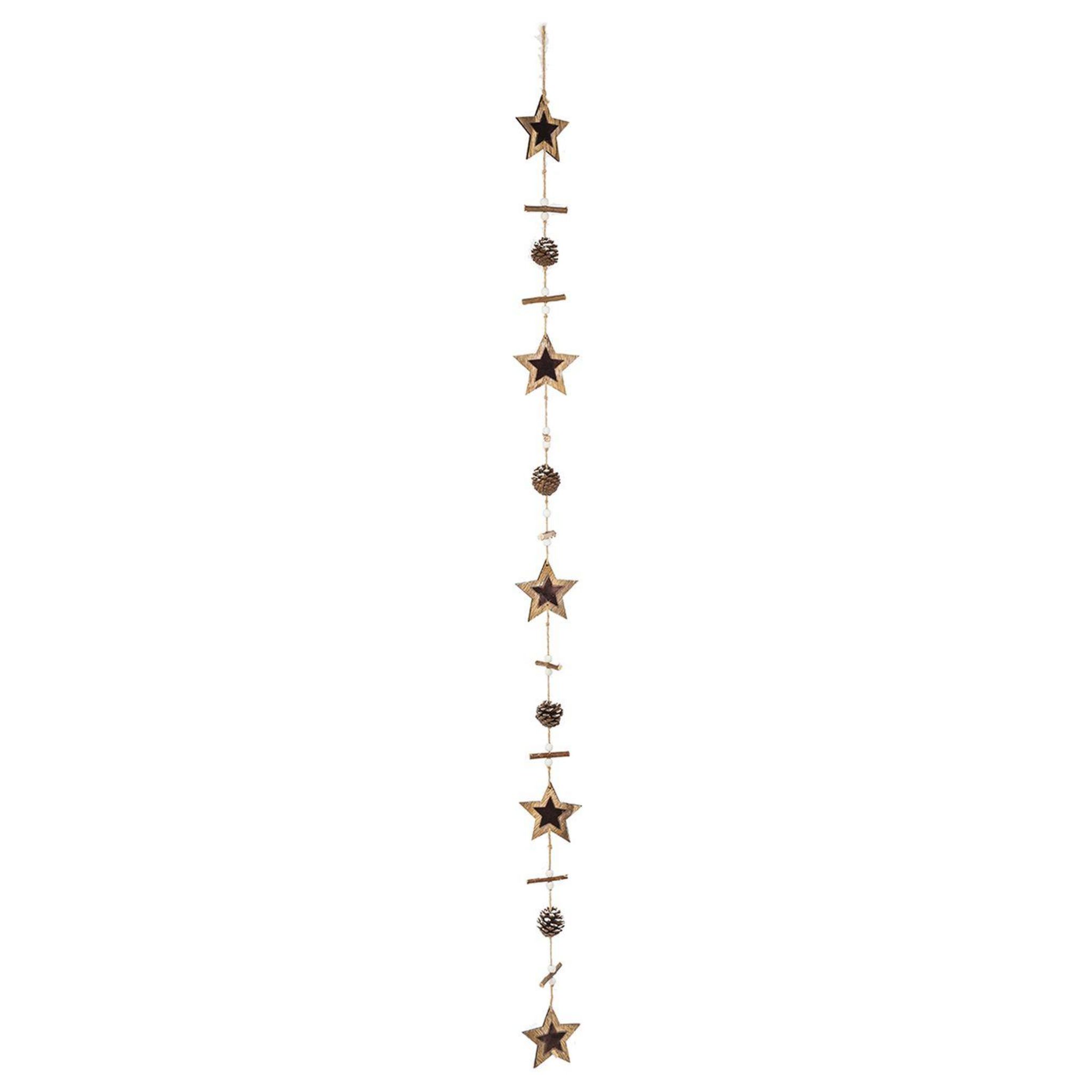 Guirlande en bois pour sapin de Noël Etoile - Couleur naturel