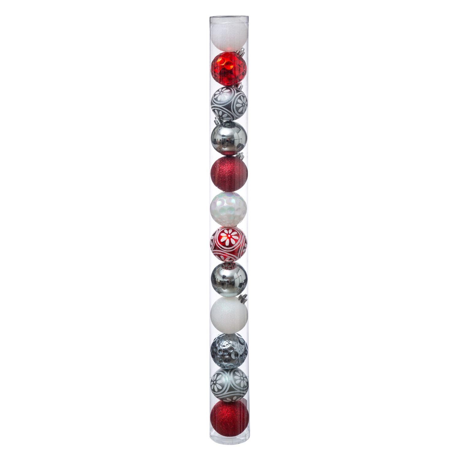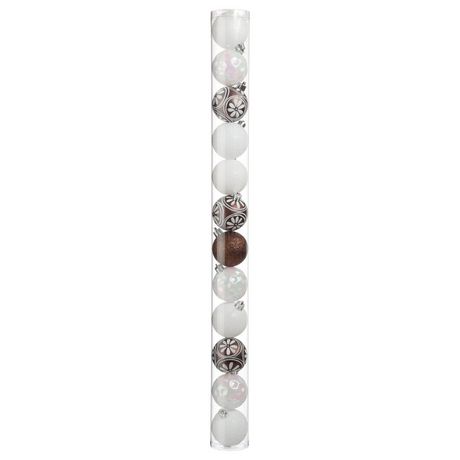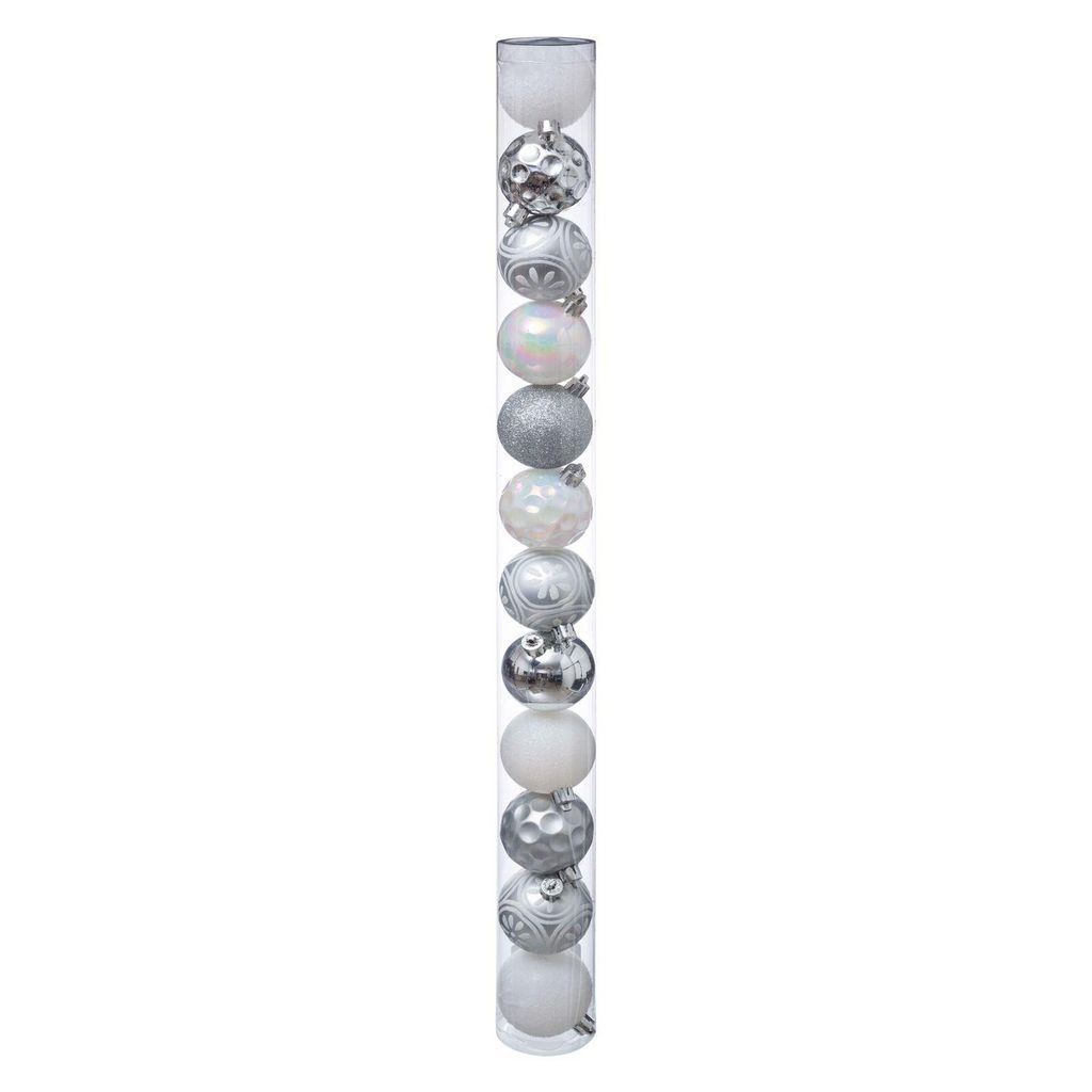 Kit de Décoration pour sapin de Noël - 12 Boules - Argent et blanc