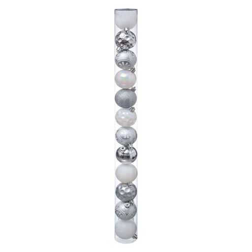 Kit de Décoration pour sapin de Noël - 12 Boules - Blanc, argenté et noir