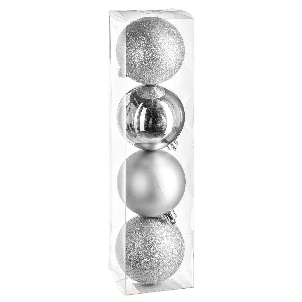 - Comprenant 4 Boules de Noël finition mate, pailletée et brillante.