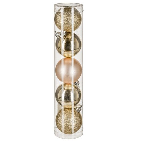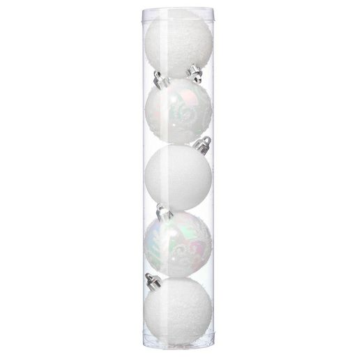 - Comprenant 5 Boules de Noël finition mate, pailletée et brillante.