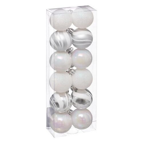 Lot de 12 Boules de Noël Colorama 4cm Argent & Blanc