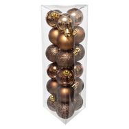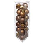 Contient 3 Boules Brillantes Marron Clair, 3 Boules Mat Marron Clair, 3 Boules Brillantes Marron, 3 Boules Mat Marron, 3 Boules Pailletées Marron, 3 Boules Pailletées Marron Foncé