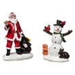 Lot de 2 Santons Père Noël & Bonhomme de Neige 6cm Blanc