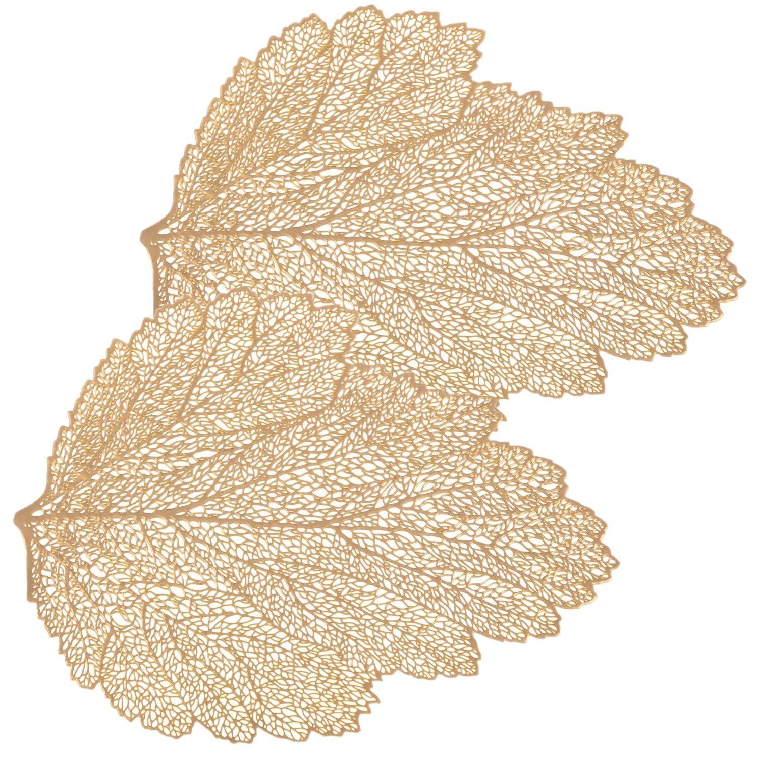 Lot de 2 sets de table motif feuille - 47 x 36 cm - Doré