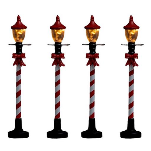 Informations Techniques : Dimensions : L. 1 x l. 1 x H. 10 cm Matière : Polyrésine Spécificités : Festif & Élégant Lot de 4 Lampadaires Ampoules : 4 led blanc chaud Effet Lumière fixe Fonctionne à Piles (2 x AA non incluses) Poids : 0,04 kg Couleur : Rouge & Blanc