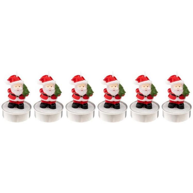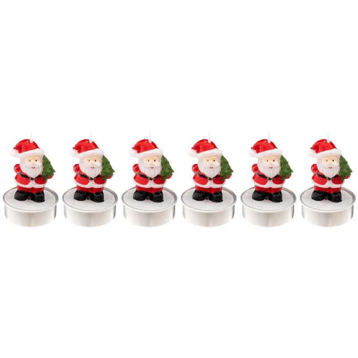 Lot de 6 Bougies Déco Père Noël 6cm Rouge & Blanc