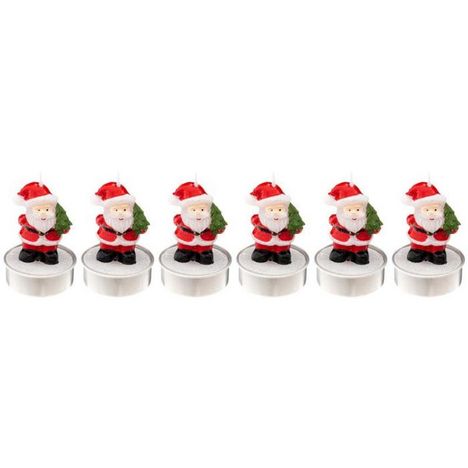 Informations Techniques : Dimensions : D. 4 x H. 6 cm Matière : Cire Spécificités : Pratique & Utile Lot de 6 Bougies Design Père Noël avec Sapin Durée de Combustion : 4,5 heures Combustion interne Poids de la Cire : 168g Poids : 0,21 kg Couleur : Rouge & Blanc