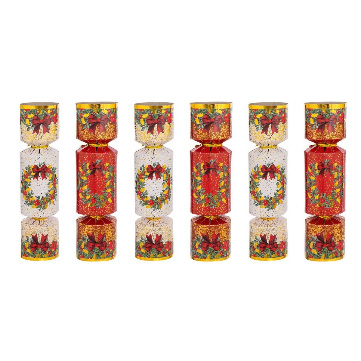 Lot de 6 crackers imprimés Couronne de Noël - Rouge et blanc